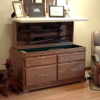 MH Custom Woodoworks can create a variety of rustic hidden compartment furniture pieces, including this chest with a vertical mirror. Behind the mirror are two vertical drawers that pull out from either side, allowing for storage of a number of guns or other valuables...