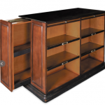 Thos Baker offers this hardwood cherry Alchemist Bookcase with secret storage drawer behind front facing shelves. Drawers are accessed by sliding a panel out from the side and can be used for anything from secret research and reports to an emergency stash of liquor.