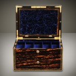 This antique jewelry box by C.F Hancock contains many secret compartments in drawers, each controlled by a different locking mechanism.