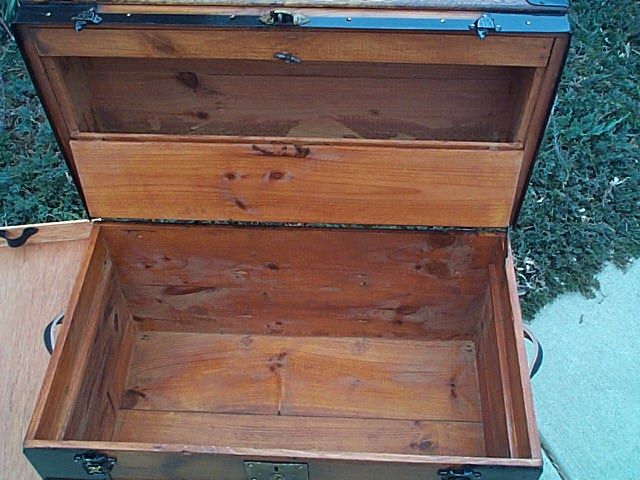 This panel folds up to conceal the storage compartment in this trunk lid. – Source: http://www.thepirateslair.com/antique-trunks/221-flat-top.html