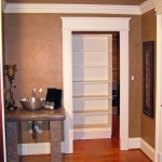 This custom bookshelf door was made by Dowd Temple Designs. It doesn’t pivot or slide to the side like many secret doors, but pushes straight back on casters to reveal a large walk-in closet space.