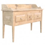 This reproduction console table ion Ebay is made of 100 yr old reclaimed wood flooring. The top slides forward to reveal to form a writing desk and reveal a secret compartment.