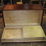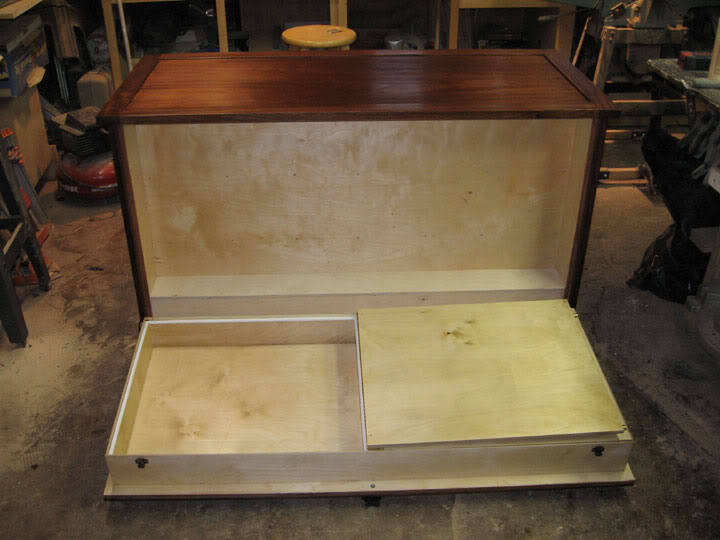 This custom mahogany dresser featured on LumberJocks includes a large fold down compartment in the rear. It’s not easy access, but it would be an inconspicuous hiding spot for long term storage of valuables.