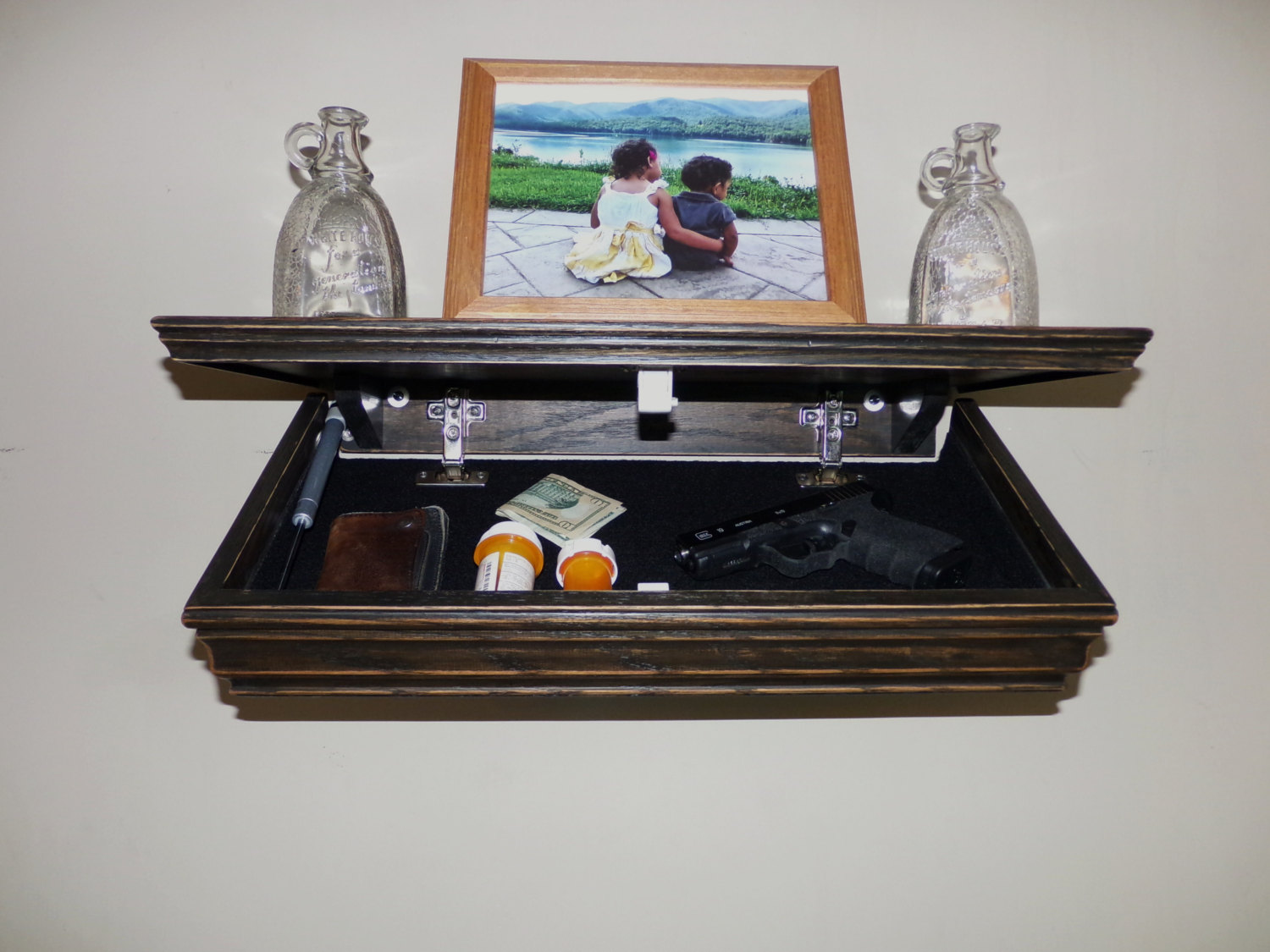 This type of shelf is a convenient way to store medication or gun at easy reach, but out of plain sight and the hands of little ones.