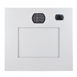 The steel WallVault from Canon Security Products easily mounts in the wall and can be concealed behind a painting or picture frame. It has an electronic lock and key override which opens the vertical drop door instantly. The inside of this wall safe is upholstered and lit with 2 LED lights. There is also a false bottom hiding a secret compartment below.