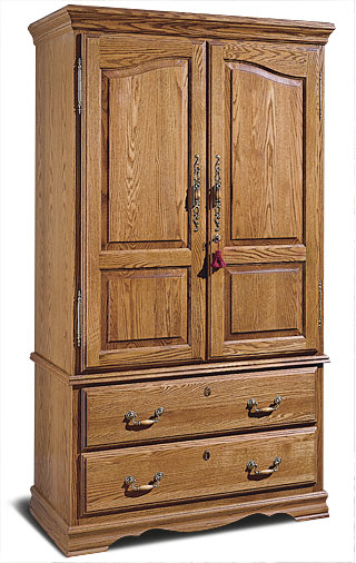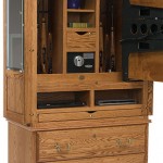 This armoire from Furniture Traditions has secret compartments behind the flat screen TV. The TV swings out to reveal a safe and two compartments big enough to store long guns. While not a gun safe, it is a rather secure gun cabinet. The outside doors lock. The TV swing arm locks, and there’s a locking cable that goes through the trigger guards. This piece of bedroom furniture also includes a locking jewelry drawer.
