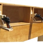 CovertFurniture.com is a newer company that specializes in secret compartments in furniture. This headboard can be made with 2 or 3 pop-out handgun compartments, depending on the bed size, allowing for easy access even when lying in bed.