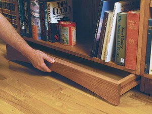 A secret compartment toe kick drawer is a great place to stash valuables under cabinets and furniture.