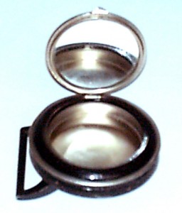 This vintage belt buckle listed on Ebay includes a lift-up mirror lid and secret compartment for rouge.