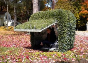 This secret shelter featured on Facebook is disguised as a ordinary yard shrub. The side opens up to allow entry into this small space.