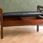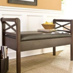 The seat on this bench from Skymall lifts up to reveal two secret storage compartments. This bench works great in a bedroom, mudroom or foyer.