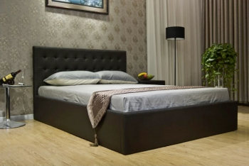 Overstock.com has a great deal on this leatherette bed with a surprise. The attractive bed has a mattress that lifts up from the foot end and reveals a large storage area beneath.