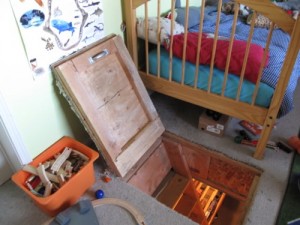 Hidden Trap Door to Secret Play Room by Chad King | Jul 3, 2011 | Stash Pics | 0 comments Trap Door to Secret Toy Train Room This trap door in a child’s room leads to a secret room full of toy trains.