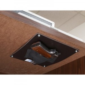 Hidden Under Desk Gun Holster by Chad King | Jan 8, 2013 | Stash Pics | 0 comments Hidden Under Desk Pistol Holder This Wolverine gun holster mounts under a desk and keeps a pistol ready for quick access.