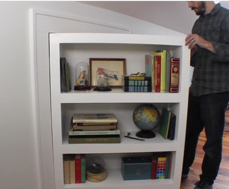This detailed tutorial has many pictures that show how to build a quality bookcase door to a secret room. – Source: http://www.iliketomakestuff.com/secret-door-bookcase/