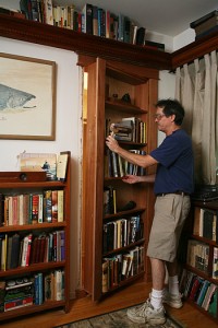 Secret Hidden Bookcase Door Plans and How-To by Chad King | Nov 30, 2011 | 0 comments Source: http://www.garymkatz.com/trimtechniques/hidden_pivot_bookcase_install.htm Submit a CommentYou must be logged in to post a comment.