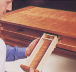 Tradewind Tiaras did a piece here on building a secret compartment drawer in the toekick of a new cabinet install. She uses 7 pictures and several steps so you can see the details involved in this project. Normal drawer railas are attached to the front of the toekick so the final drawer is almost undetectable unless you know it’s there ahead of time.