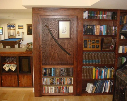 Here is the Invisidoor in it’s closed position. – Source: http://www.houzz.com/projects/64473/Invisidoor-Hidden-Door-Bookcase