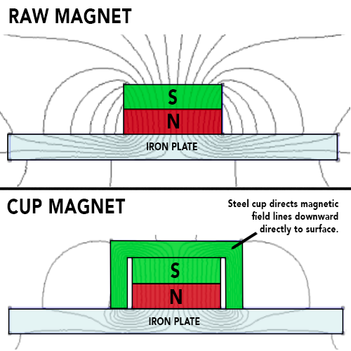 Metal cup magnet housing directs all of the magnetic pull into the metal surface you attach your StashVault to, producing surprising magnetic holding power.