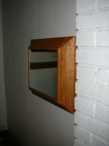 This wall mirror conceals secret compartment holding multiple guns. – Source: http://secretwoodworks.com/Secret-Mirror-Compartment.html
