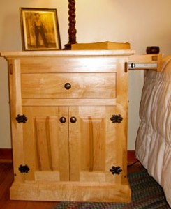Wicks Custom Furniture can custom make a nightstand like this with a secret compartment drawer on the right or left, for easy access storage of bedside goodies or weapons.