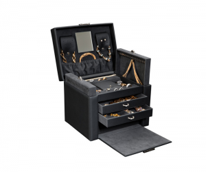 This portable Döttling jewelry box secures into a larger luxury safe. It docks inside the safe to charge a GPS unit. When removed from the safe it can be tracked anywhere in the world.