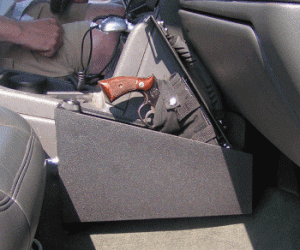 The QuickDraw gun safe from TruckVault allows for very easy access to guns from the front seat of a car or truck.