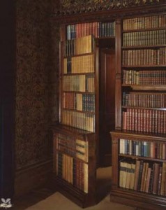 Secret bookcase door in library of Oxford Hall – Source: http://www.beautiful-libraries.com/3500-3.html