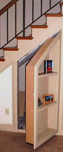 Secret Bookcase Door Under Stairs by Chad King | Mar 23, 2012 | Stash Pics | 0 comments Custom Secret Bookcase Door This secret passage from Hidden Doors access the storage space under the stairs.