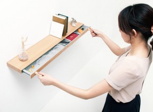 Torafu Architects conceived this ‘clopen’ shelf that includes a secret drawer. It’s made of aluminum, but clad with a veneer to look like solid wood. Two magnetic keys are used to pull the shelf open.
