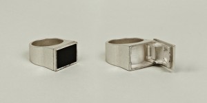 This brass ring from Maison Martin Margiela has a black front piece that pivots open to reveal a secret stash compartment inside.