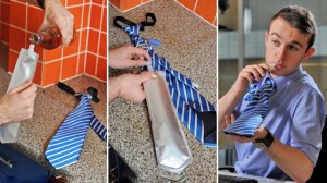 Ever headed to a meeting with a parched throat and no time to stop by the water cooler? The Flask Tie has a solution for you. This necktie includes a secret bladder that stores water, or the beverage of your choice for those times when you actually need it.