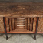 Kagen Schaefer created this Pipe Organ Desk. The notes are played by closing drawers on the back side. Each drawer pushes air through the pipes and plays a note. There is an pneumatic logic board that remembers the order of the notes. When the correct order is played, a secret compartment is unlocked. The logic board can be programmed to unlock when any song you choose is played.