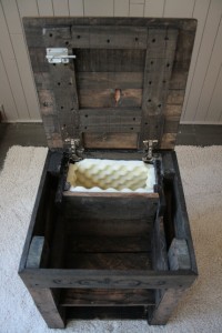 The top of this pallet table unlatches and raises to reveal a secret storage compartment inside. – Source: http://www.etsy.com/listing/115435530/hidden-compartment-nightstand