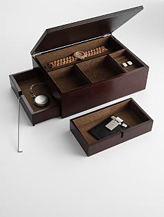 Secret Compartment Valet by Chad King | Jan 31, 2012 | Stash Pics | 0 comments Secret Compartment Valet This isn’t the best shot, but one drawer is hidden behind the other on this dresser top valet. You use the wire shown to pull out the second drawer.