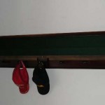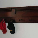 This custom shelf on ArmsList includes a coat rack below. A fold-down panel along the front opens up to reveal a secret compartment that can store a long gun or other valuables.