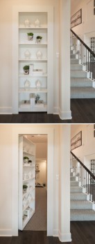 This bookcase door and secret room was custom built into a home in Houston’s Bridgeland community, by Trendmaker Homes. They took a normal doorway and created a custom built-in set of shelves.
