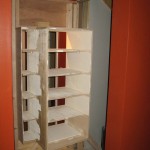 This custom media rack shown on AVSForum swings out by way of a secret door on Soss hidden hinges, allowing access to the rear of the rack and storage space underneath the stairs.
