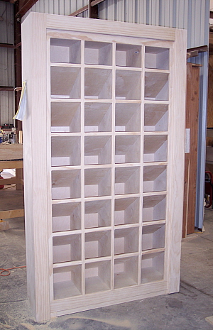 This secret door is made to look and function as a series of storage bins and shelves. – Source: http://www.hideadoor.com/gallery1.html