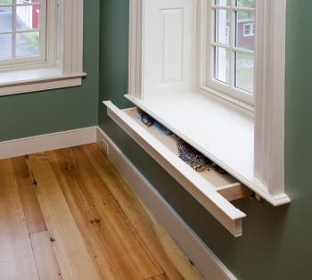 This window has a secret drawer that pulls out under the window sill. – Source: Hidden Storage Drawer Under Window