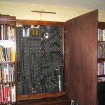 This custom office setup, built by a user on SilencerTalk.com, conceals an array of guns behind a secret door. When closed the wooden panel holds diplomas and accolades. But when opened up you have access to a complete arsenal.