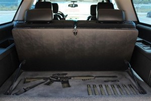 This vehicle has a custom secret compartment for long gun under a false floor behind the rear seat.