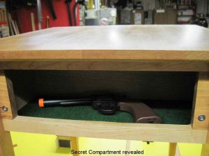 This table has a removable panel that reveals a hidden gun compartment inside. – Source: http://www.secretwoodworks.com/Open-Secret-Drawer-Furniture.html