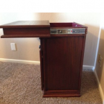 Here’s another oak nightstand listed on Ebay with a secret compartment. The top slides forward to reveal an easy to access hidden compartment for a weapon, valuables or other items you don’t want in plain site.