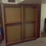 These IKEA bookcases are connected together, then mounted on casters and large gate hinges to create a secret door. A “how-to” article is located on IKEA Hackers.The extra wide door pivots open to reveal a hidden furnace closet room behind.