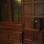 This office from the Prohibition Era has a secret panel door that opens to reveal a hidden cabinet in the wall.