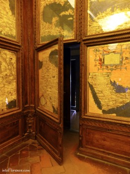 The Palazzo Vecchio in Florence hosts a number of mysteries, like this secret passage in the Hall of Maps. One of the maps swings out to allow access behind to a completely different area of the building.