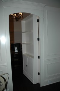This user on AVSForum used standard hinge hardware on his bookcase door to conceal his hidden office.