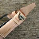 This natural leather smuggler’s belt by Barrett Alley includes an easy access secret compartment on the back side. The pocket is clever and simple, but the belt seems a bit overpriced.