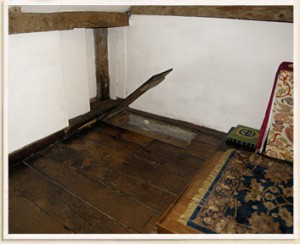 These floorboards in the chapel of Harvington Hall lift up to reveal the secret storage compartment for Catholic Mass.